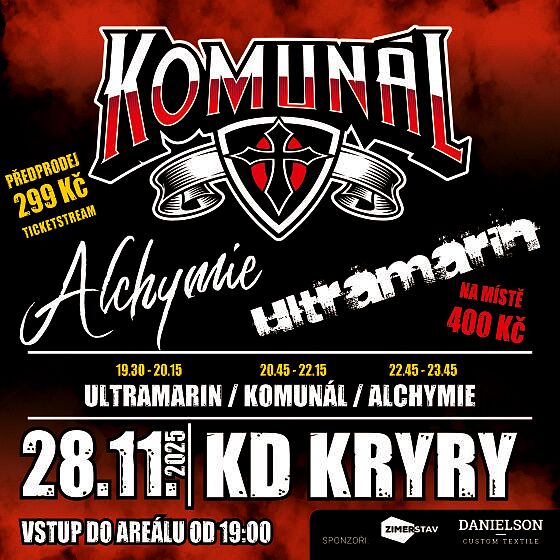 A máme tu vyvrcholení vystoupení v letošním roce. A to ne jen tak ledajaké. Zahrajeme si s kapelou Komunál v rámci jejího tour a to 28.11. v Kryrech. Dále také vystoupí kapela Alchymie. Těšíme se. Předprodej vstupenek: https://www.ticketstream.cz/vstupenky/komunal-podzimni-tour-2025
